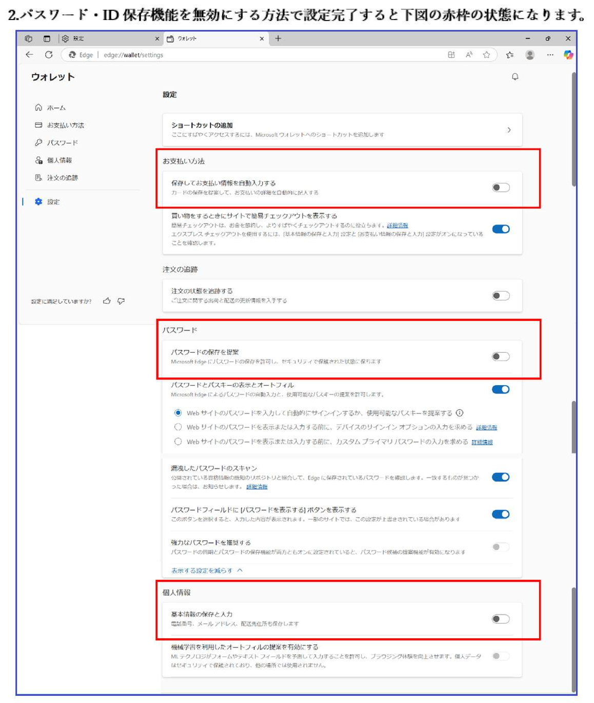 本記事では、手動で行うMicrosoft Edgeの保存済みのパスワード・IDの削除方法とパスワード・ID保存機能無効化の設定方法をご紹介します。